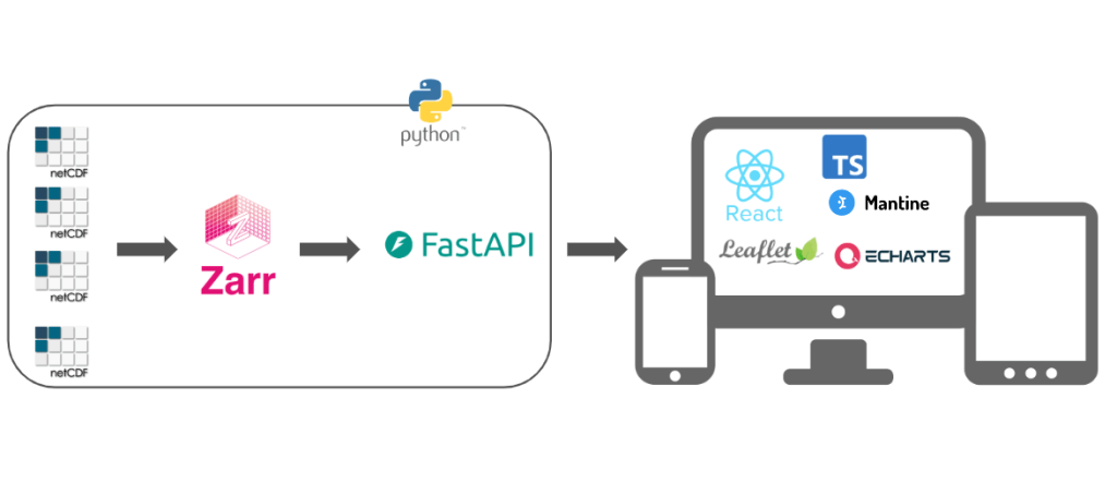 Most of the heavy work happens in the backend, which we built with Python and FastAPI. That layer serves the fire-related NetCDF data, exposes the various endpoints, and generates heatmaps whenever someone changes a filter or a new date. One of the more consequential decisions was to convert the original NetCDF files into the Zarr format. Because Zarr stores data in small, cloud-friendly chunks, it sped up access and made the whole system be more responsive.